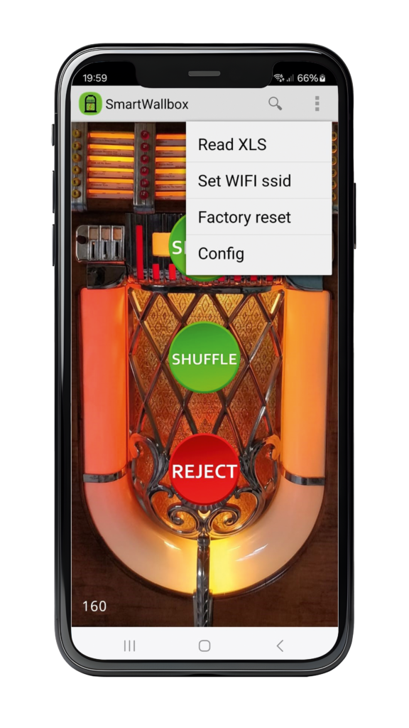 - configuratie van het type jukebox en optioneel extra wallbox